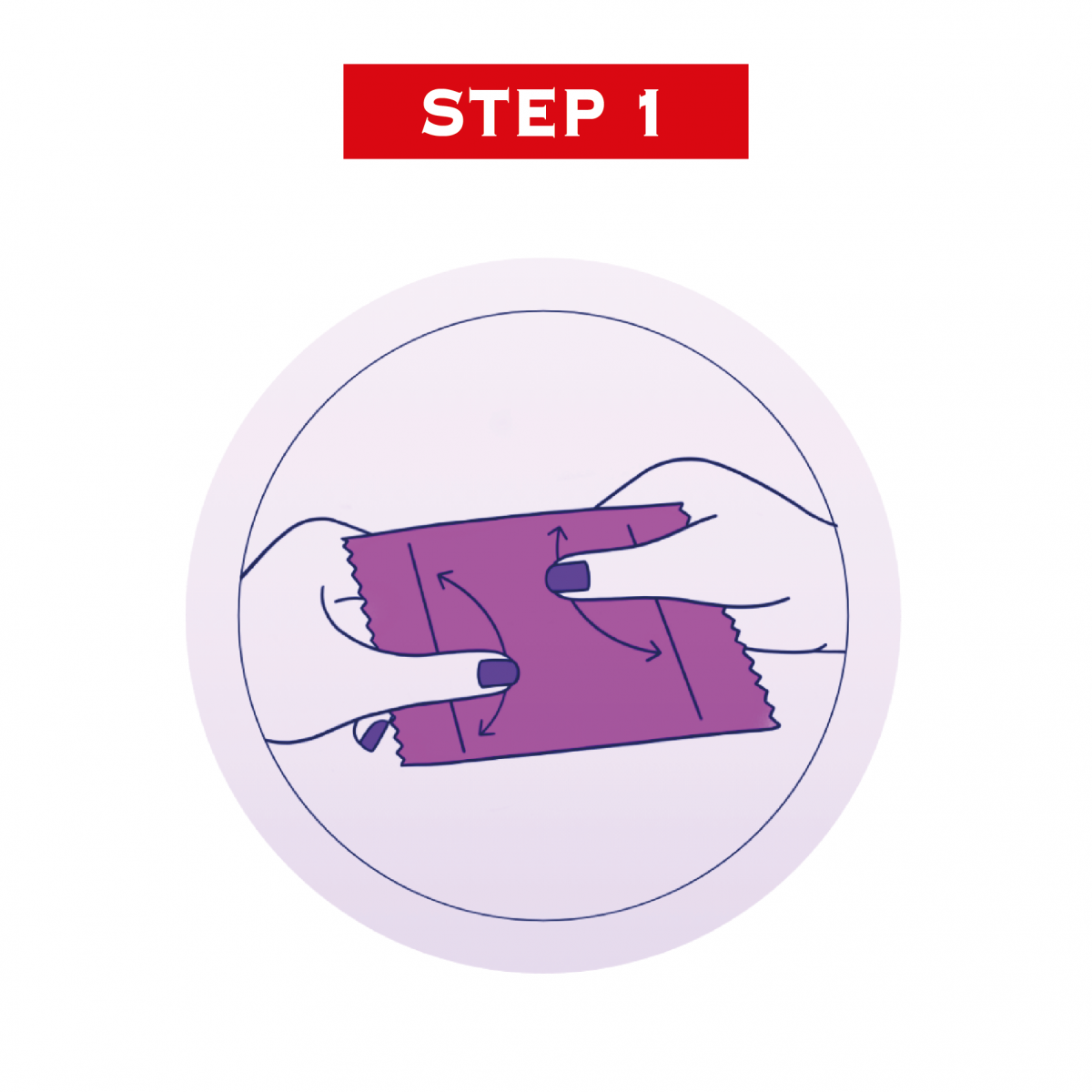 Apri la confezione seguendo la linea di strappo sulla confezione ed estrai il preservativo.
