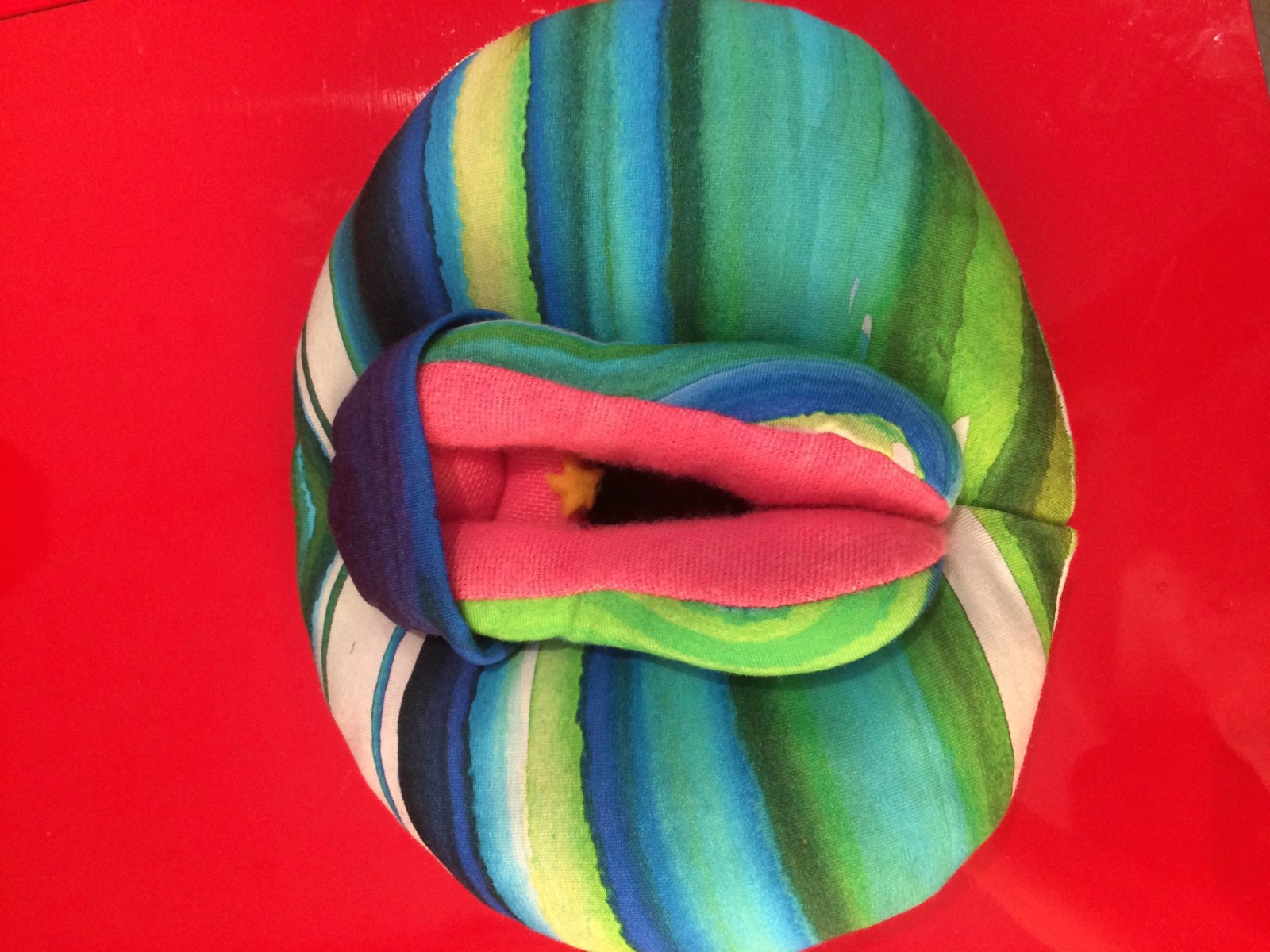 Ci serviamo di questa vulva in peluche per descrivere la «Geografia del piacere», come mi piace definirla. Sicuramente approfondiamo il fatto che sia molto più esterno di quel che si pensa, la parte più sensibile è infatti il terzo esterno della vagina. Decisamente poniamo l’accento sul fatto che sia molto più simile al piacere maschile in quanto a tempistiche di risposta e se trattato nel modo adeguato. Naturalmente chiariamo quanto possa essere vario, personale, divertente ed esplosivo.